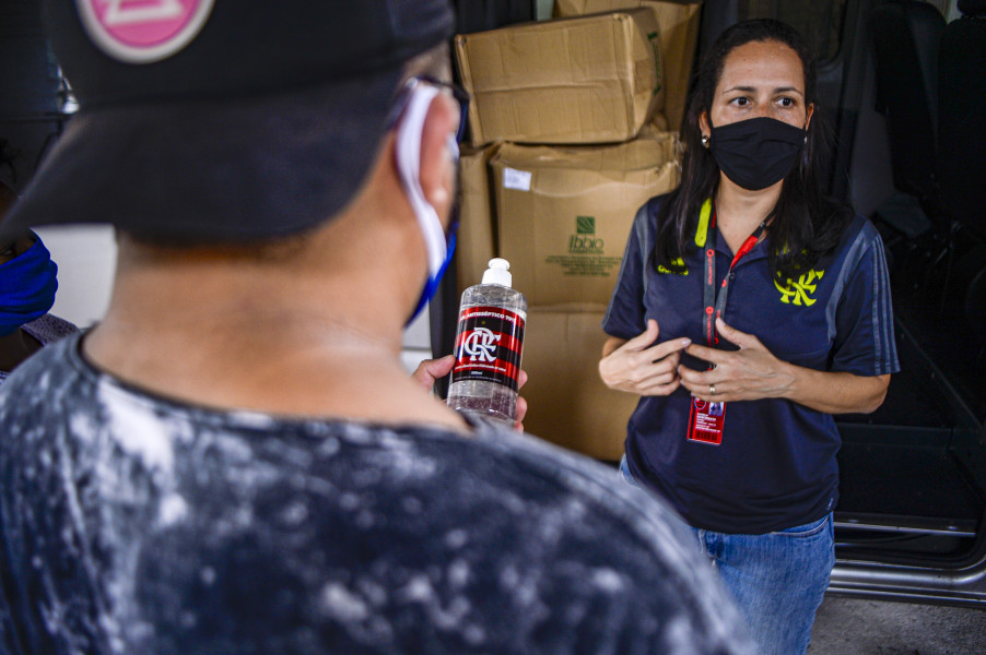 Na manhã da última quinta-feira (30), o Flamengo realizou mais uma entrega da campanha “SOS Favela/Viva Rio” e “Nação Solidária, Flamengo campeão dentro e fora de campo”. Dessa vez, na Ladeira dos Tabajaras, em Copacabana. Moradores da comunidade receberam as cestas básicas e o álcool em gel. A ação contou com apoio do projeto Raiz da Bola.