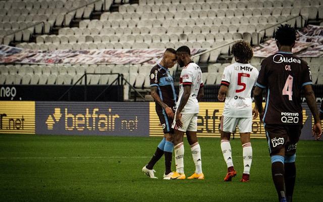 Ao final da partida, o meia fez uma publicação comemorando a vitória e, a imagem escolhida foi uma foto em que o camisa 8 está frente a frente com Luan, do Corinthians. Os dois atletas se desentenderam em um lance da partida, oque gerou uma pequena discussão. O Coringa rubro-negro aproveitou a foto perfeita e escreveu:
