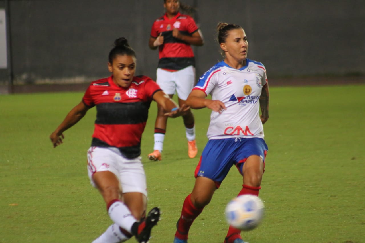 Na quinta rodada do Brasileirão Feminino, o Flamengo venceu o Bahia por 1 a 0 na noite deste domingo (2), em Pituaçu-BA. O gol do Mais Querido foi marcado por Raquel, logo aos seis minutos da etapa inicial. Com o resultado, as Meninas da Gávea conquistaram a primeira vitória no campeonato.