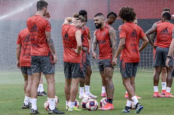 O elenco rubro-negro fez uma atividade técnica e tática no campo, e na parte da tarde, seguiu viagem para Atibaia-SP, onde ficará concentrado para o jogo desta quarta-feira. O time de Paulo Sousa poderá contar com o retorno de Gabigol e Rodinei, que estava suspensos. Veja abaixo as fotos do treinamento:
